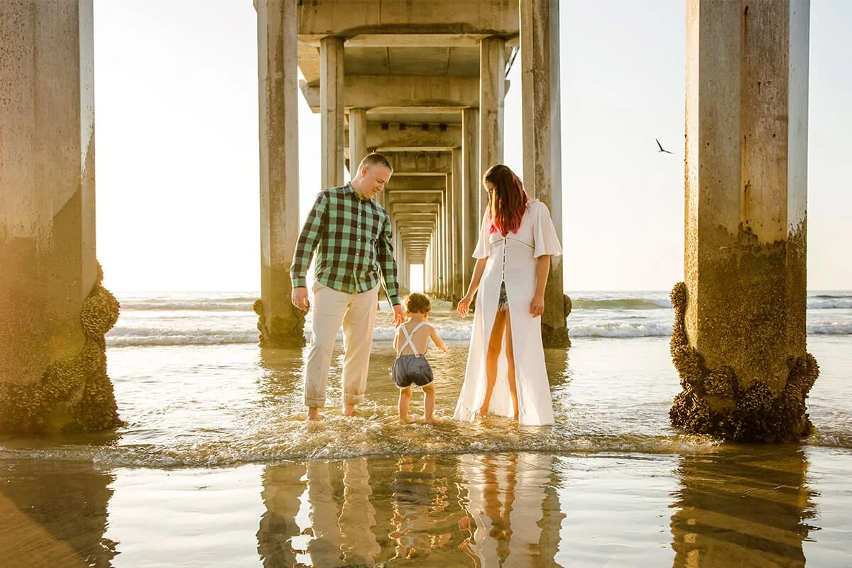 Wide, open sand, the iconic stretch of Scripps Pier, and the dramatic Torrey Pines cliffs in the distance make La Jolla Shores my most-requested location for families with young children. The calm surf gives kids room to play freely, the pier adds a timeless architectural element to portraits, and the westward-facing shoreline delivers stunning light at golden hour.